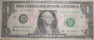 Somehow I totally missed putting this on my blog.  Not sure how it happened, but I feel just terrible.  I want to thank Jill and her husband for sending off a dollar bill in honor of Gracie marked for the Where's George? tracking program.  They were nice enough to send me a picture of Gracie's dollar and the tracking info so I can track Gracie's dollar wherever it goes.  Thanks, Jill!!